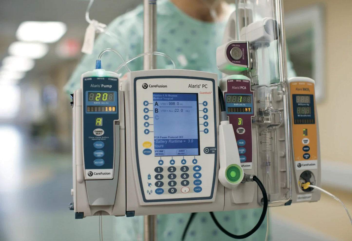 The Carefusion Alaris Medley Module 8015 Point-of-Care Unit (PCU) is the central hub or "brain" of the Alaris System. It connects and controls infusion and monitoring modules such as LVP (Infusion Set), SPO2, NIBP, ETCO2, Syringe, and PCA module units.